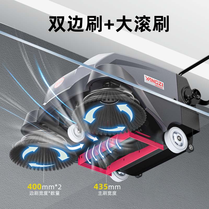 - 效率:扬子S3(新)电动手推扫地机免维护款,单机清洁效率达4900㎡/h,1名工作人员操作,仅需0.5小时即可完成全域2000㎡(厂房1200㎡+操场800㎡)粉尘及杂物清扫,替代3名人工,整体清洁效率较纯人工清扫提升80%+,相较于传统手推式扫地机效率提升30%,大幅缩短清洁工期,不干扰家俬生产进度,操作轻便无需耗费大量体力。